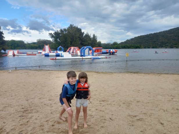 We took our first splash at the Canberra Aqua Park at Black Mountain Peninsula.